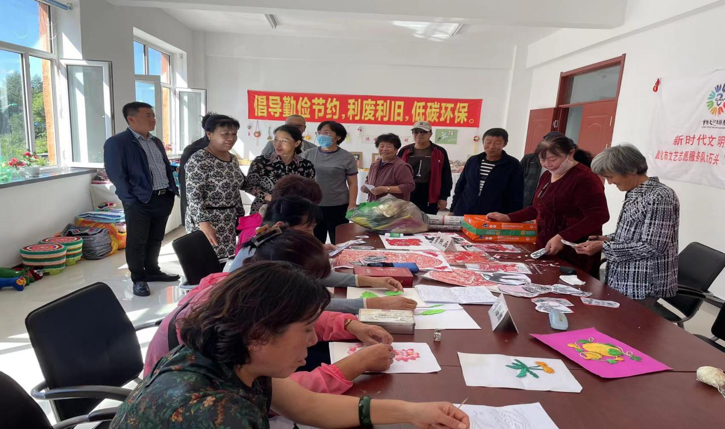 此次作品展是响应市文联号召,以喜迎二十大和州庆70周年为契机,在社区居民中倡导勤俭节约、废物利用和低碳环保,让社区居民有所事事、有所快乐、有所创收。参展作品多是人们生活所需,老少喜好的鞋帽、提兜、坐垫、布艺、剪纸、画布、贴画、树皮画、丝网花等文创产品,展示出传统手工艺和现代时尚元素的有机结合。现场还进行了丰富的手工艺展演活动,并且无偿发放了学习材料(图样、解说书等)。