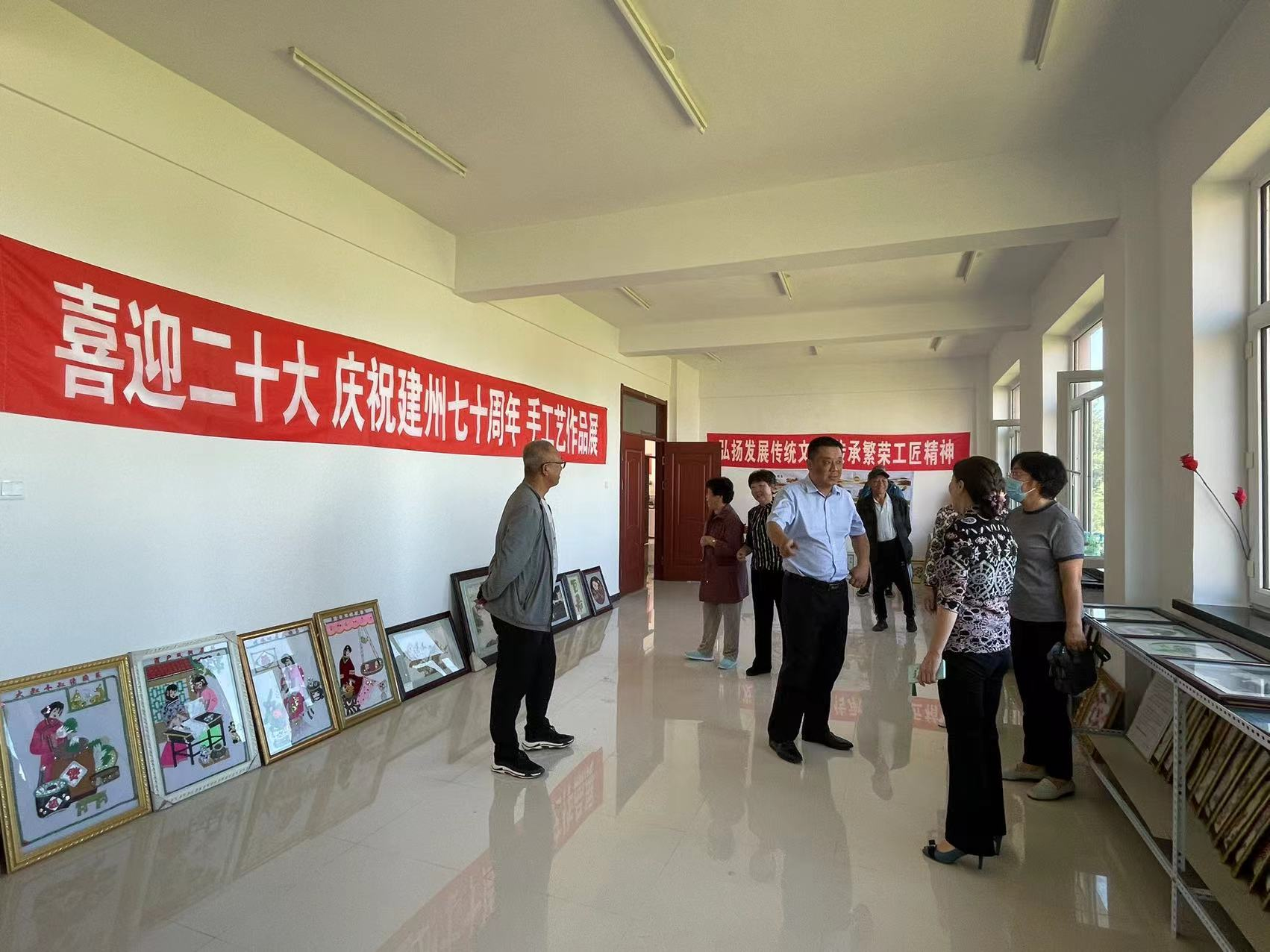 8月25日,大石头镇夕阳文化协会开展了“喜迎二十大 庆建州七十周年”手工作品展览。市文联主席张春华、大石头镇党委副书记王延魁等领导参加展览活动。