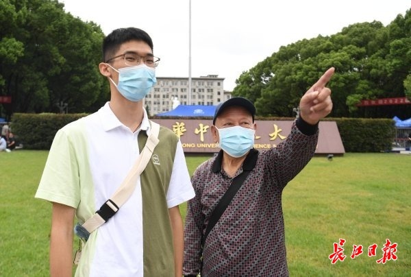 爷爷黄昭煊今年已经83岁,他这次专程陪着孙子一起来,也来看看久违的母校。在华中大校门口,爷爷看到南一楼,感慨地说,自己还在里面上过课。他记得,南一楼是他毕业那年建成的,他还在里面上过一次课。