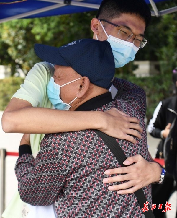 黄思皓和爷爷黄昭煊拥抱,爷爷不停勉励黄思皓。 记者高勇 通讯员高翔 摄