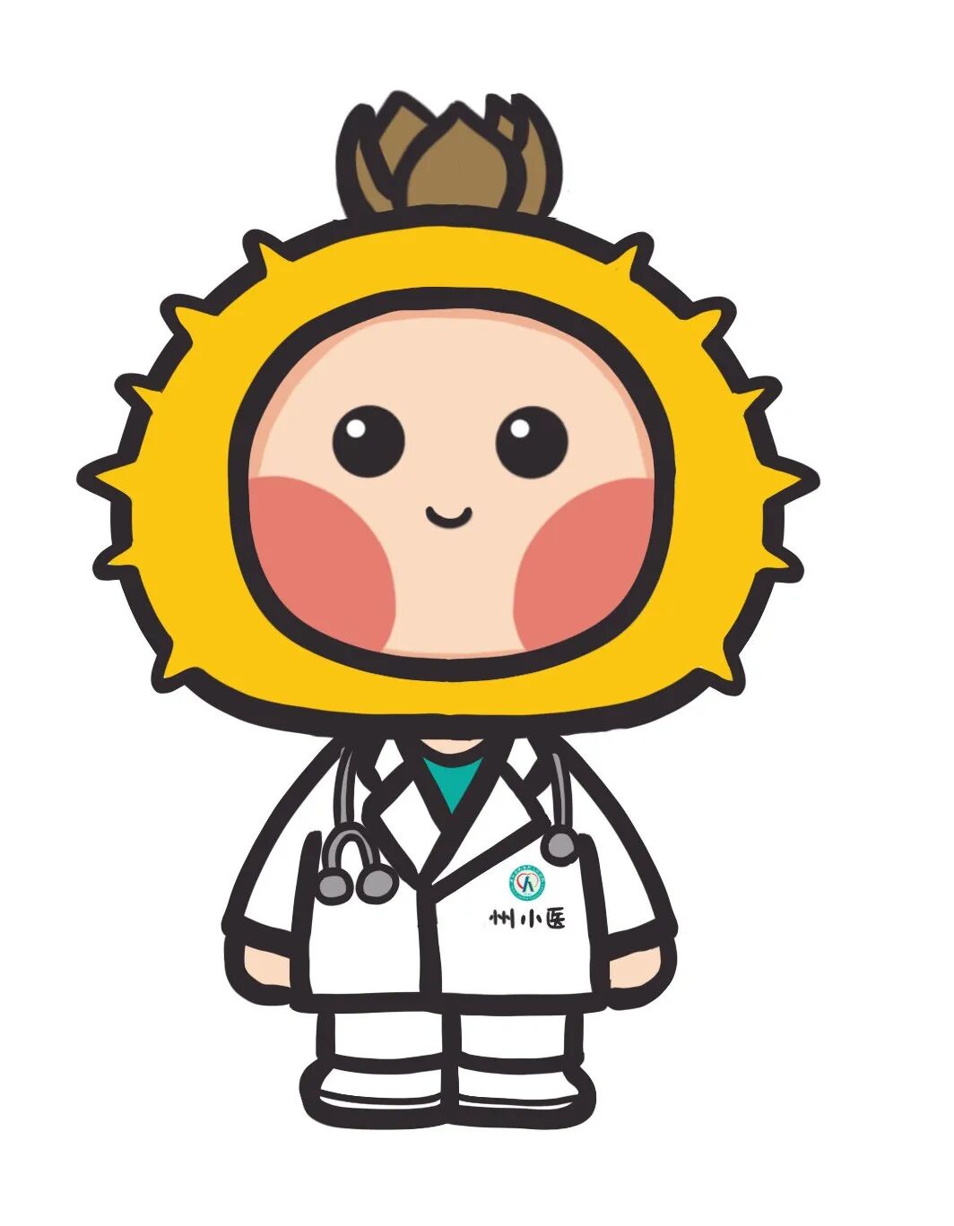 我,传承着贵州省黔南州人民医院“大医精诚,医者仁心”的宗旨,以贵州天赐珍宝、黔南特产“刺梨”为载体,将刺梨拟人化,结合医生服饰与院徽,诞生出我的卡通IP形象。