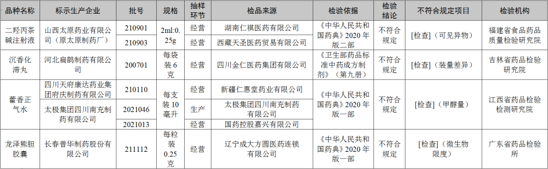 对上述不符合规定药品,药品监督管理部门已要求相关企业和单位,采取暂停销售使用、召回等风险控制措施,对不符合规定原因开展调查并切实进行整改。