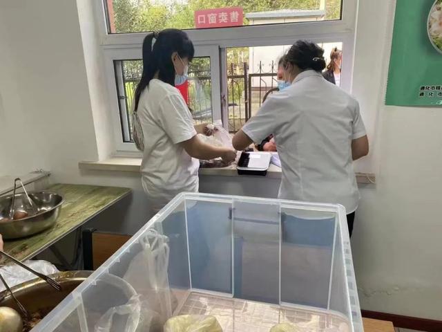 “老年幸福食堂”试营业期间,周一至周五仅提供晚餐,售卖时间为下午3时至5时。待正式营业后,计划提供每日三餐服务。在售卖窗口前,一份份打包好的餐食正在递出,居民事先办好卡存好钱即可现场刷卡购买。