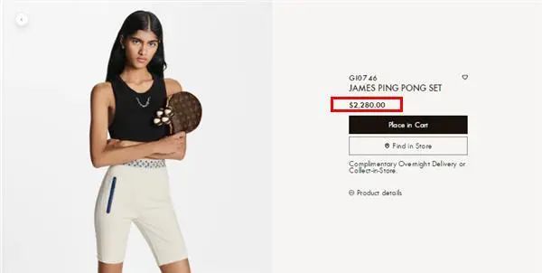在LV美国官网上,则显示有两款乒乓套装,一套为棕色,售价2280美元,一套为灰色,售价2400美元。