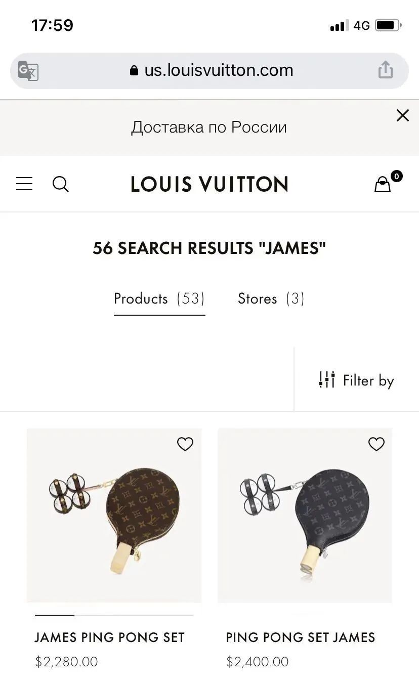 小坊在LV中国官网上看到,确有一款“JAMES 乒乓套装”,包括一副球拍及球拍套,四颗乒乓球及球套,加印花图案,售价18300元。