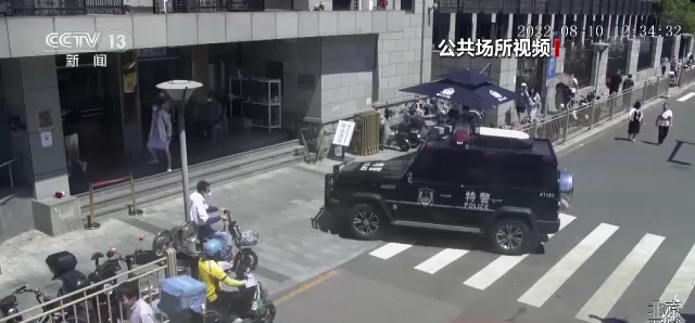 公共场所视频画面显示,张先生抱着孩子,径直向执勤民警跑过去。沟通了不到20秒的时间,警车就开动了。