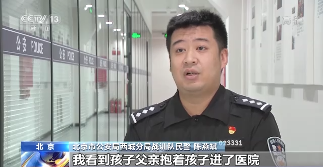 北京市公安局西城分局战训队民警 陈燕斌:我看到孩子父亲抱着孩子进了医院,进了医院以后,肯定医院会有大夫,会有护士去继续救助这名群众,踏实了,没问题了,我们就把车又开回到这个岗位上继续执勤了。