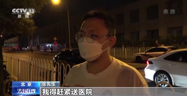 张先生:大概五点半的时候,孩子突然又发作了,然后我看到孩子的发作前兆,我就记得医生跟我说,如果孩子再发作了,我得赶紧送医院。然后我就第一时间跑出来了,然后我想着我这样如果跑过去,孩子肯定来不及,然后我看到岗亭这边还是有民警他们在这里,我再次向他们寻求帮助。