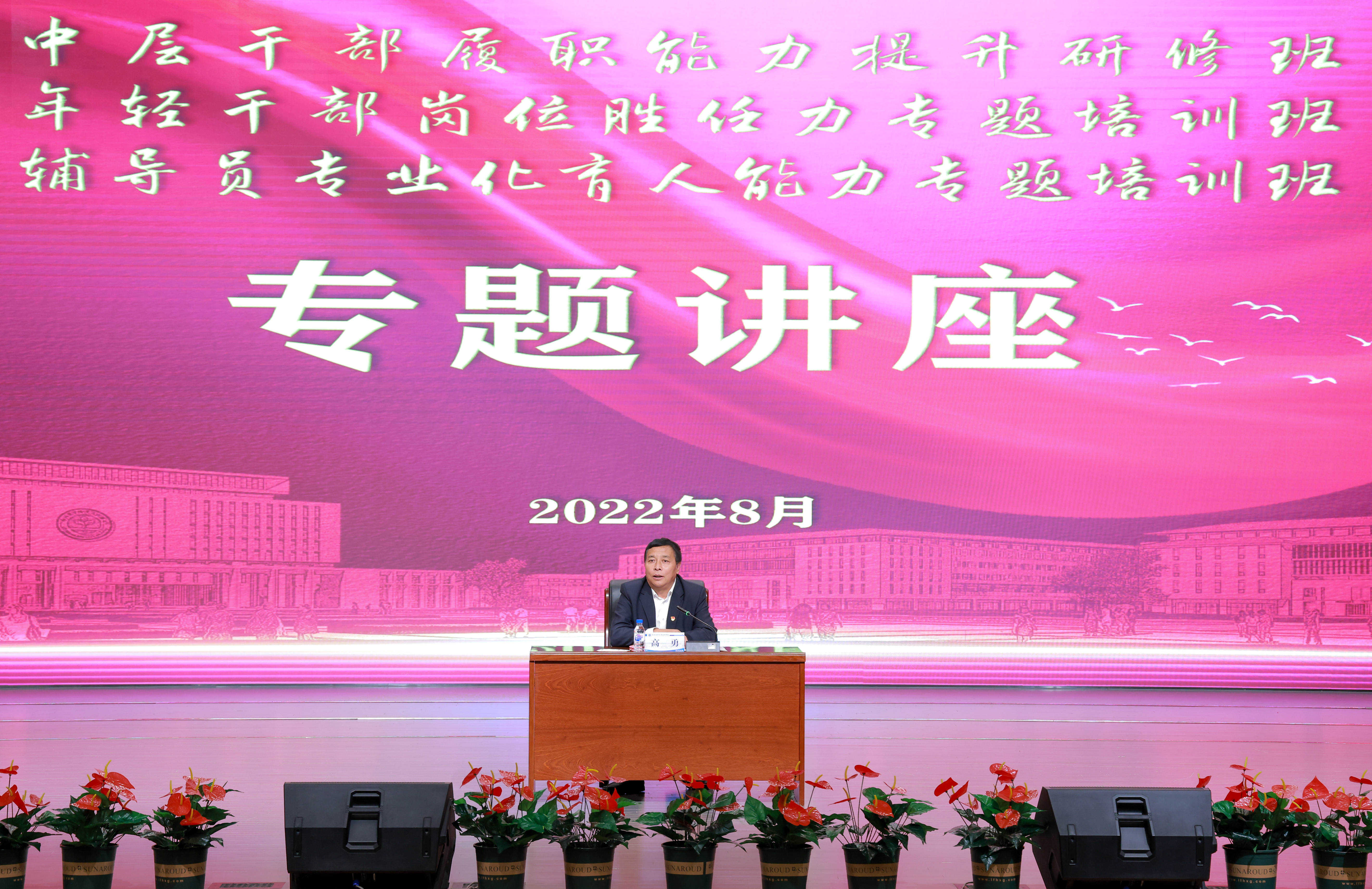 8月30日下午,在辅导员专业化育人能力专题培训班上,学团干部走上讲台,围绕学生工作实务,对全体专兼职辅导员进行了有针对性的专题辅导,既是实践也是培训。在中层干部履职能力提升班和年轻干部岗位胜任力专题培训班上,邀请到东北师范大学博士生导师程舒伟教授和吉林师范大学的曲殿彬教授,分别通过视频连线和面对面授课的方式,为中层干部和年轻干部做了“涵养廉洁文化,建设廉洁政治”和“现代大学治理体系构建与提升领导力实践路径”的专题辅导。讲座紧密结合实际,内容丰富、思想深刻,既有深入浅出的理论阐述又有旁征博引的案例分析,更有实践层面的解析参考,让与会学员受益匪浅。