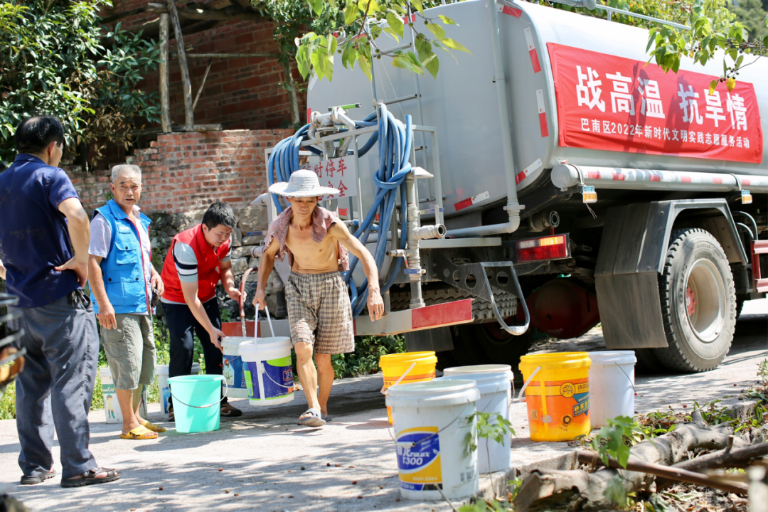 8月20日,志愿者在巴南区惠民街道显林村为村民送水。 图源重庆日报客户端