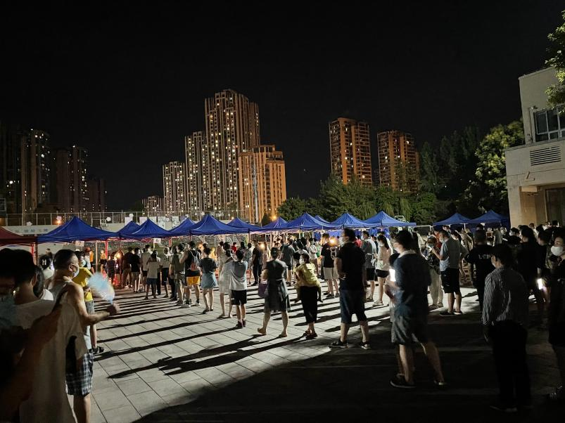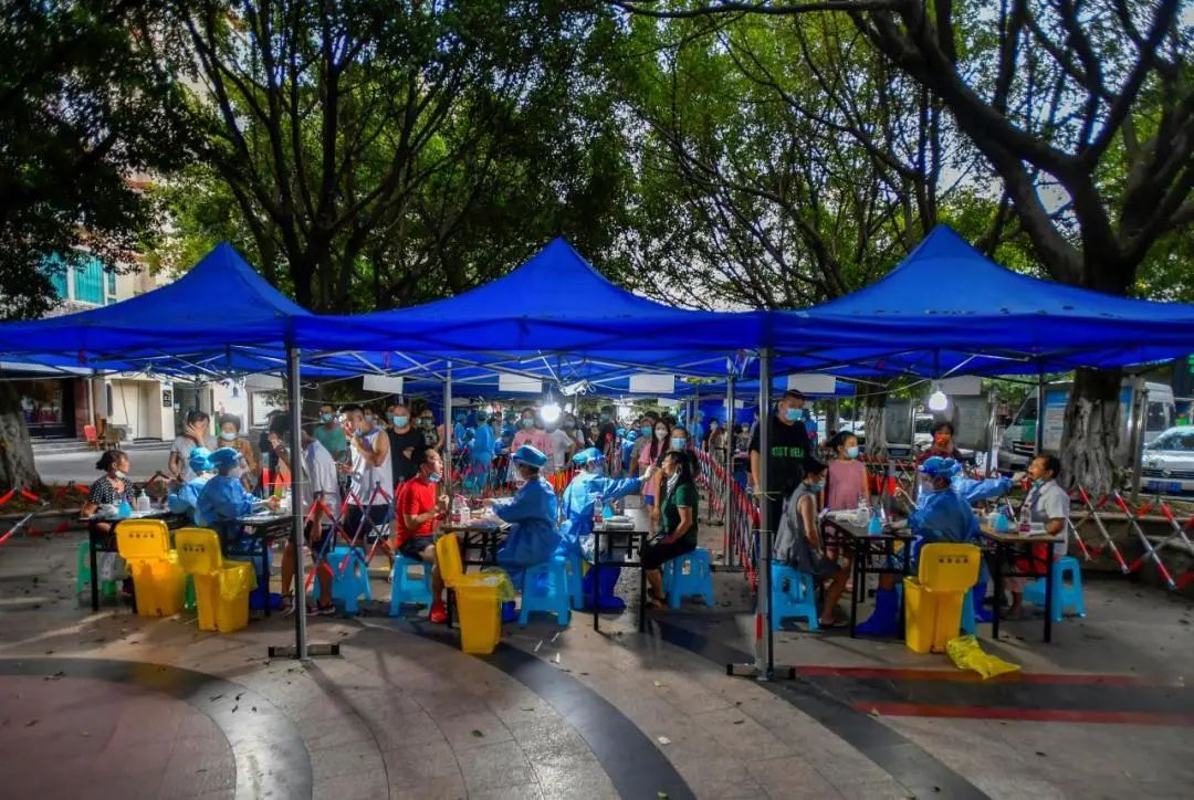 南岸区回龙湾采样点市民有序排队进行核酸采样。