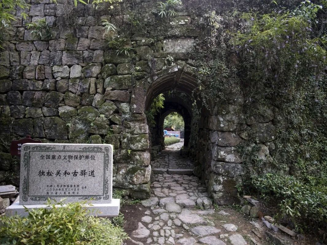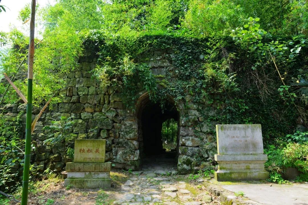 独松关因关隘边一棵千年古松而得名。高峻的独松岭上满是苍松翠竹,两条从独松岭上伸展开来的山脉,将独松关臂抱其中。当山风掠过独松关时,听着竹浪的呼啸,松涛的轰鸣,才会联想到此地曾是鼓角争鸣的古战场,依稀能想见独松关昔日的雄姿。