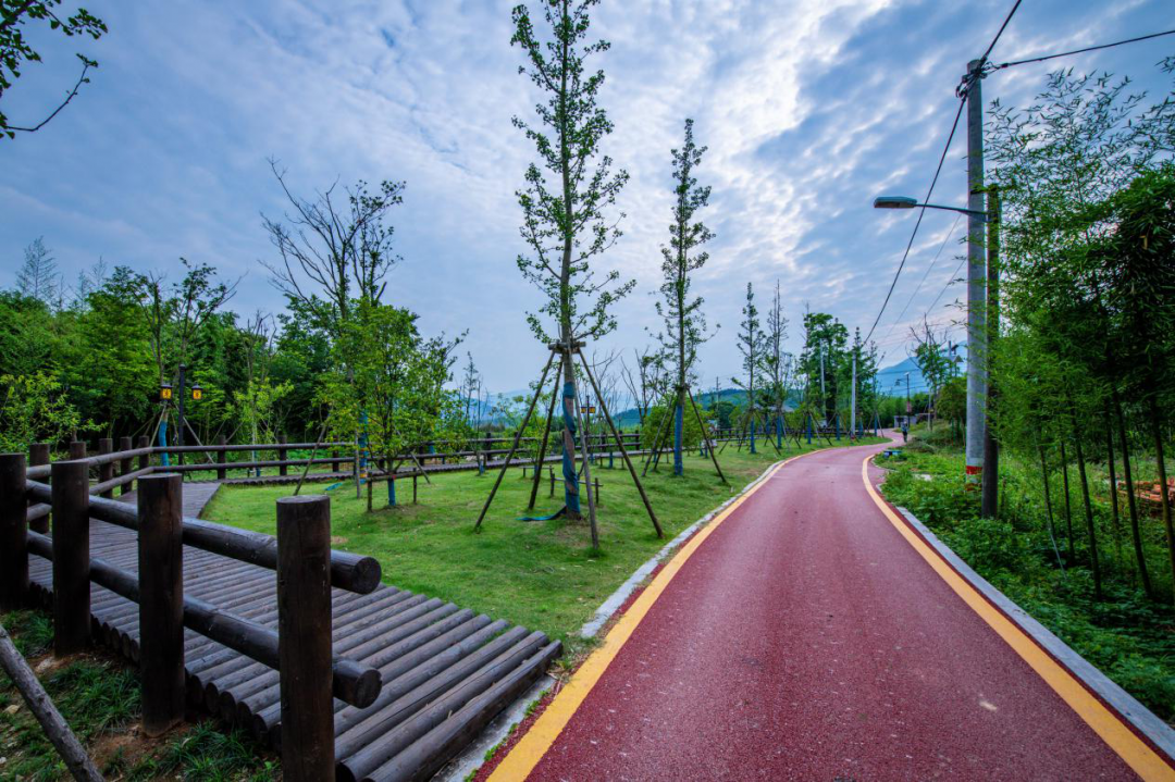 观星台、繁星驿站、丹梯亭、星空营地等景观建筑,1200米登山游步道、景墙、绿植装饰,辅以亭台楼阁、观景台等配套设施,让陡岭古道焕发生机。