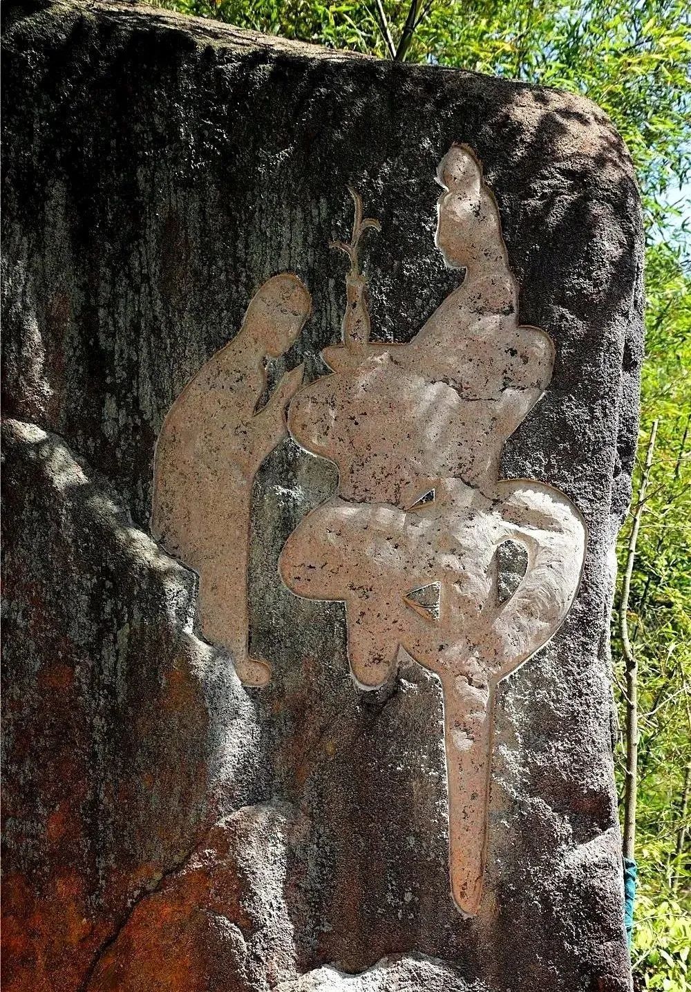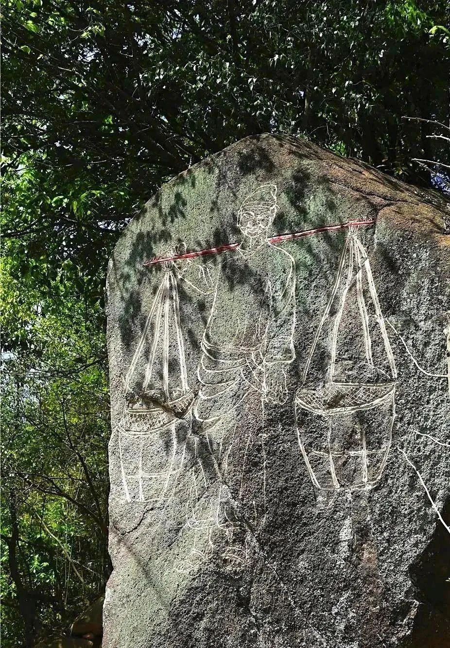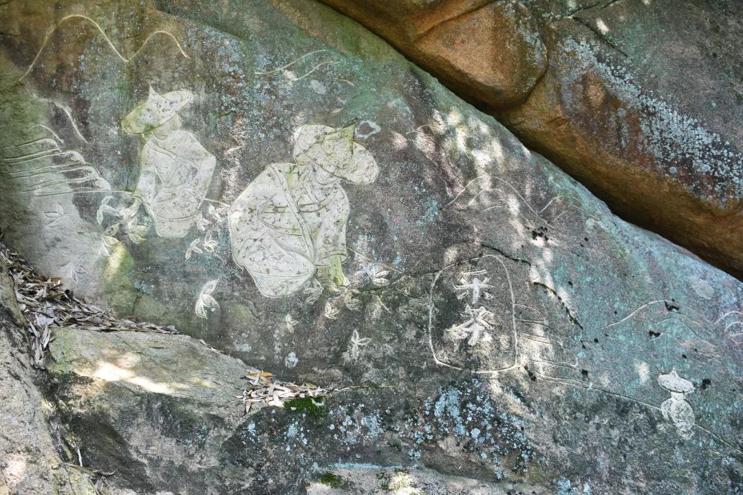 锡径古道还有一个特别的观赏景点,就是在一处的岩壁画,将禅文化、农文化、茶文化融汇其中在岩石壁面上,栩栩如生体现大径山文化。