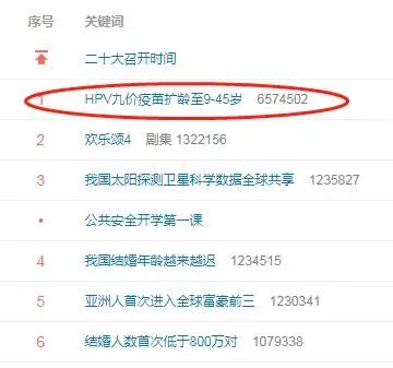 随后,“HPV九价疫苗扩龄至9-45岁”迅速登上微博热搜第一。