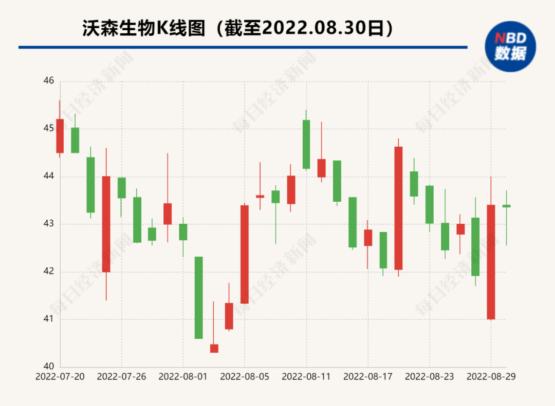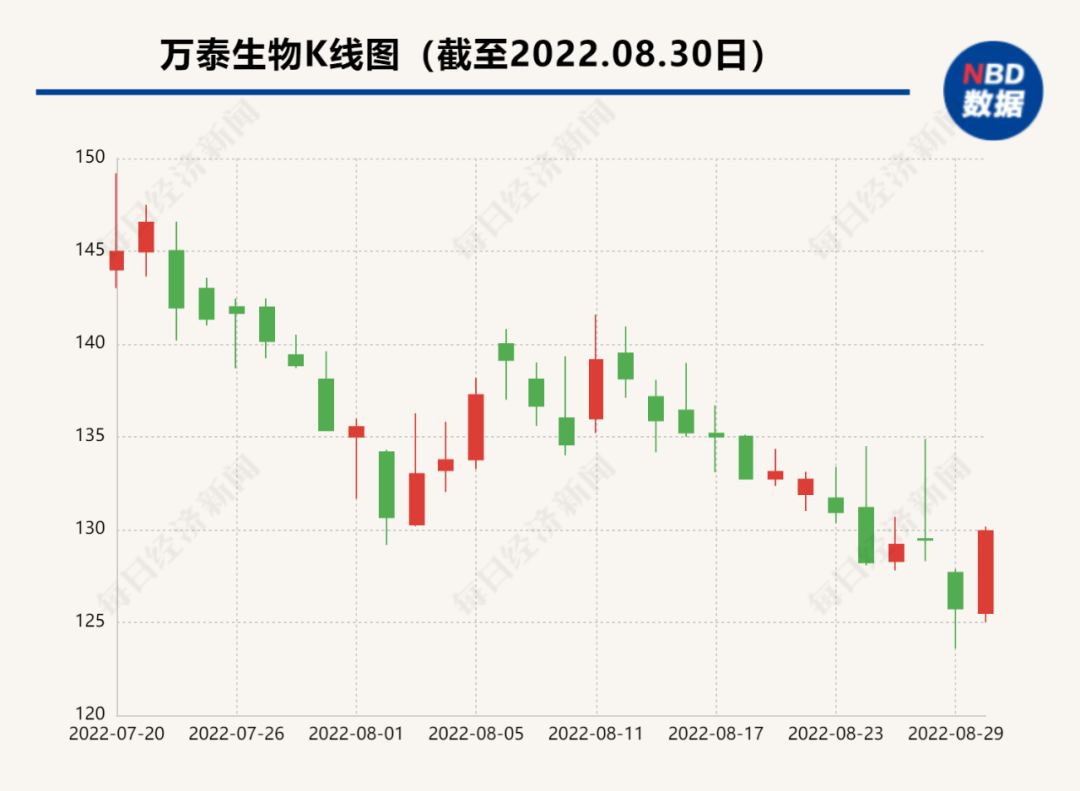 截至8月30日收盘,万泰生物股价报收129.93元,涨3.32%,总市值1177亿元。沃森生物股价报收43.36元,跌0.09%,总市值694.62亿元。