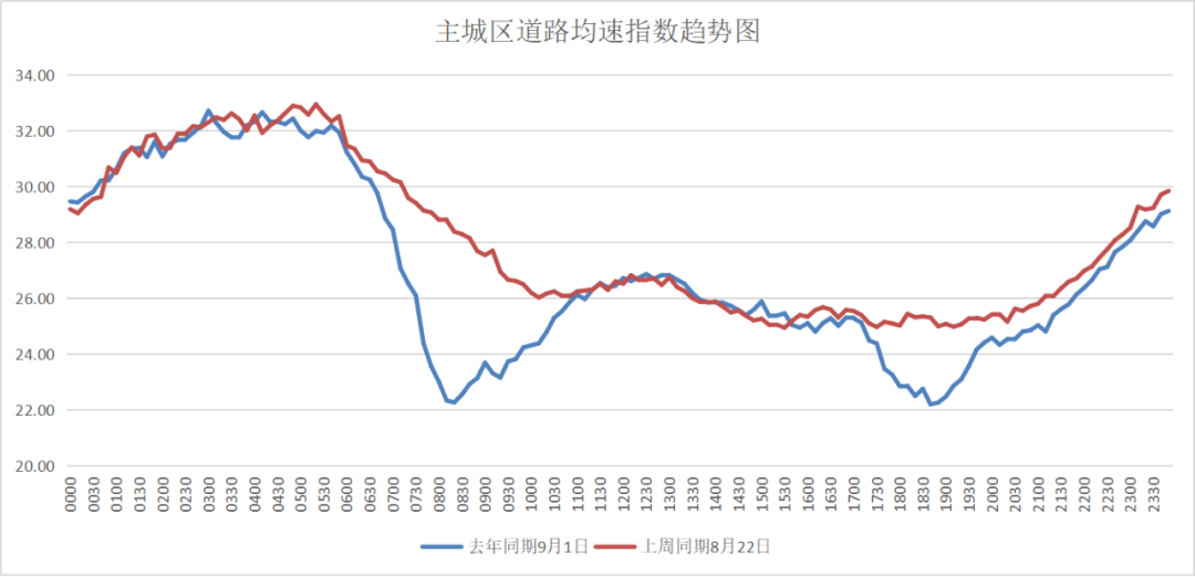 如果看不懂上图也没关系,结论告诉你:今年开学季早晚高峰拥堵程度将是普通工作日的2倍。城市主次干道车流量明显增加,学校周边道路出行密集,部分道路早高峰将提前至7点。