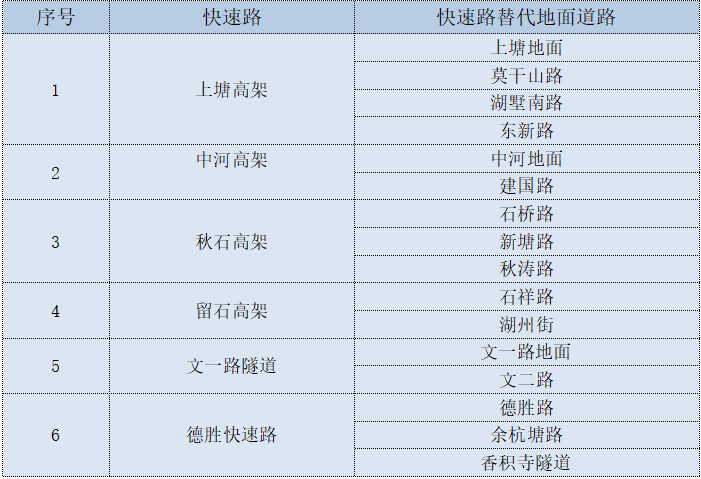 快速路仍是热门道路,预测拥堵程度较开学前一周上升25%左右。出行应尽量避开以下快速路繁忙节点:上塘高架(大关上匝道、文晖上匝道)、中河高架(涌金转盘、中河立交)、秋石高架(新业上匝道)、留石高架(石石立交、瓜山立交)、文一路隧道、德胜快速路(上德立交、石德立交),如遇拥堵建议选择以下替代道路:
