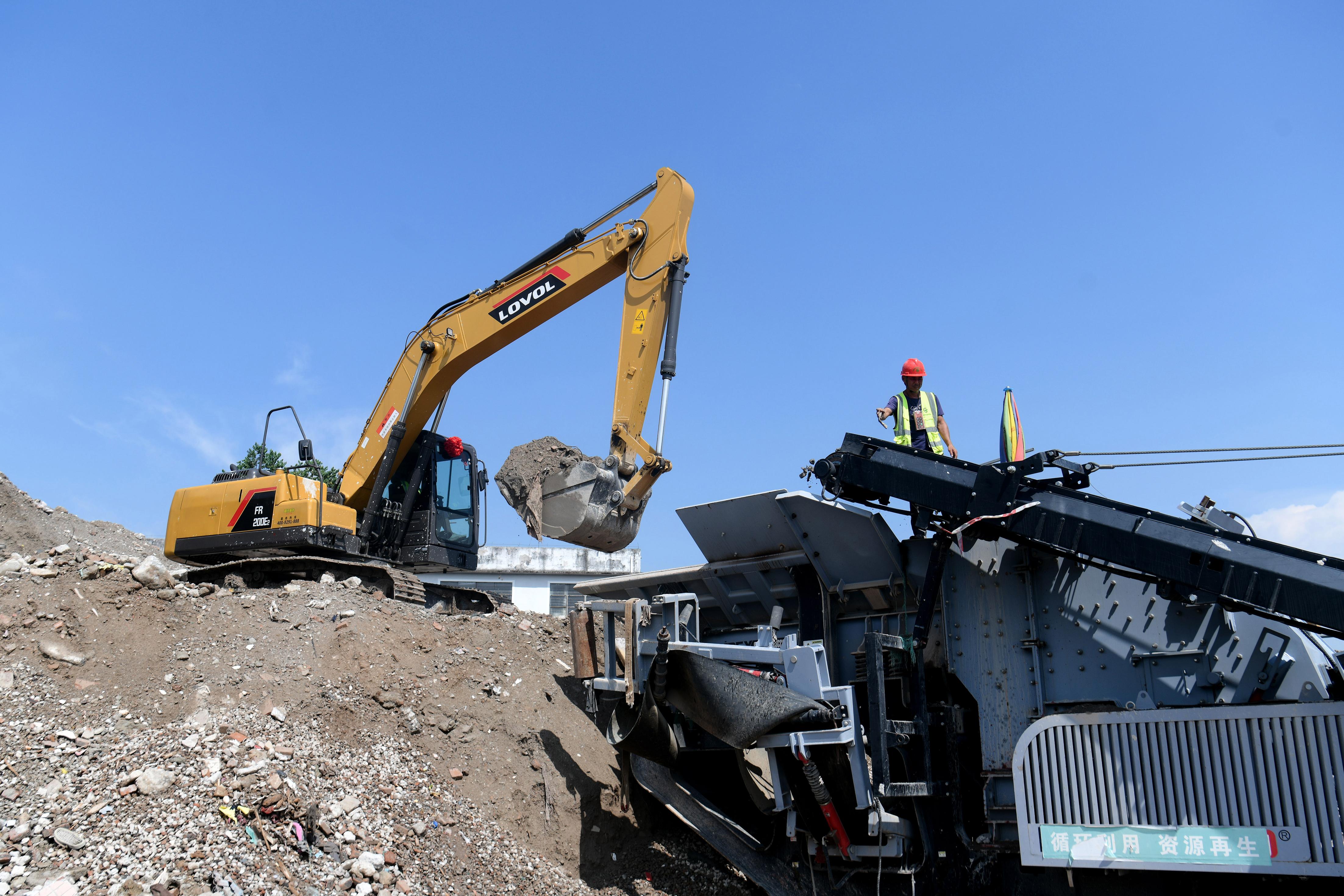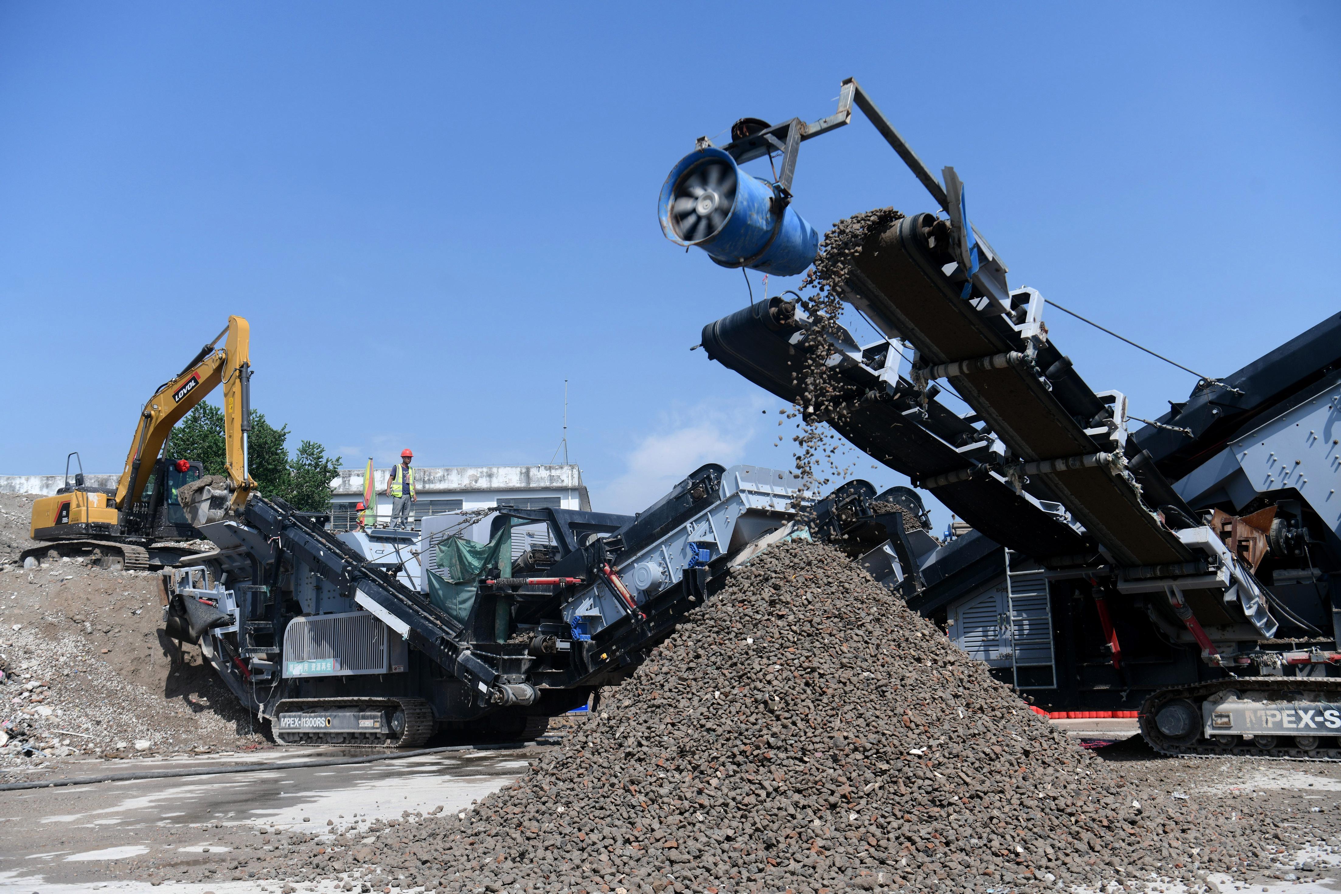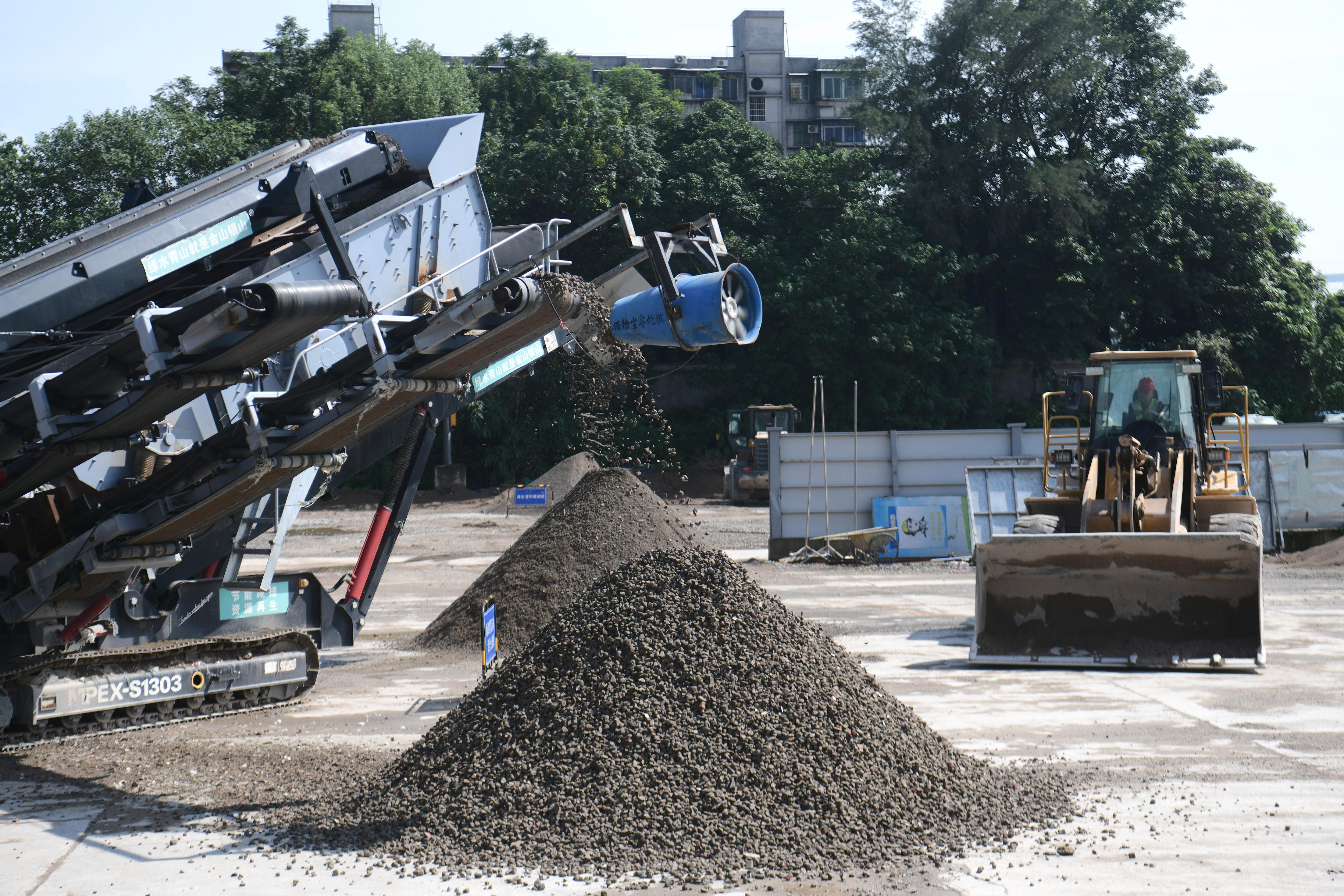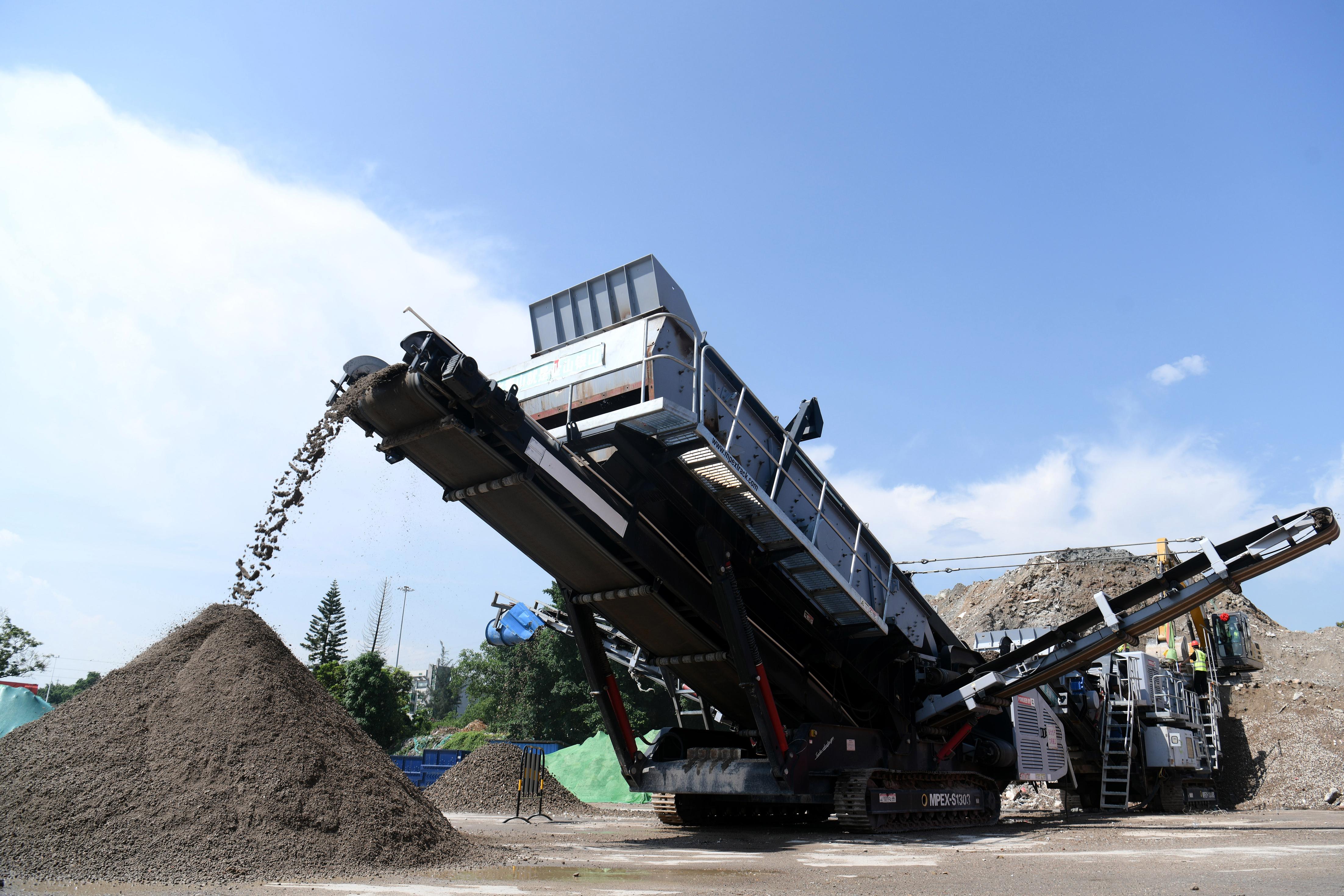 近日,在广州市城管局举办的开放体验活动中,记者看到沙浦村的旧村改造施工地搭建起了移动式建筑废弃物循环利用设施,现场的建筑废弃物被直接运到传送履带上,进行筛选、加工……经过破碎筛分生产线地处理后,只见块状的建筑垃圾破碎成了相对比较小的颗粒,“蜕变”为再生粗骨料及再生细骨料。