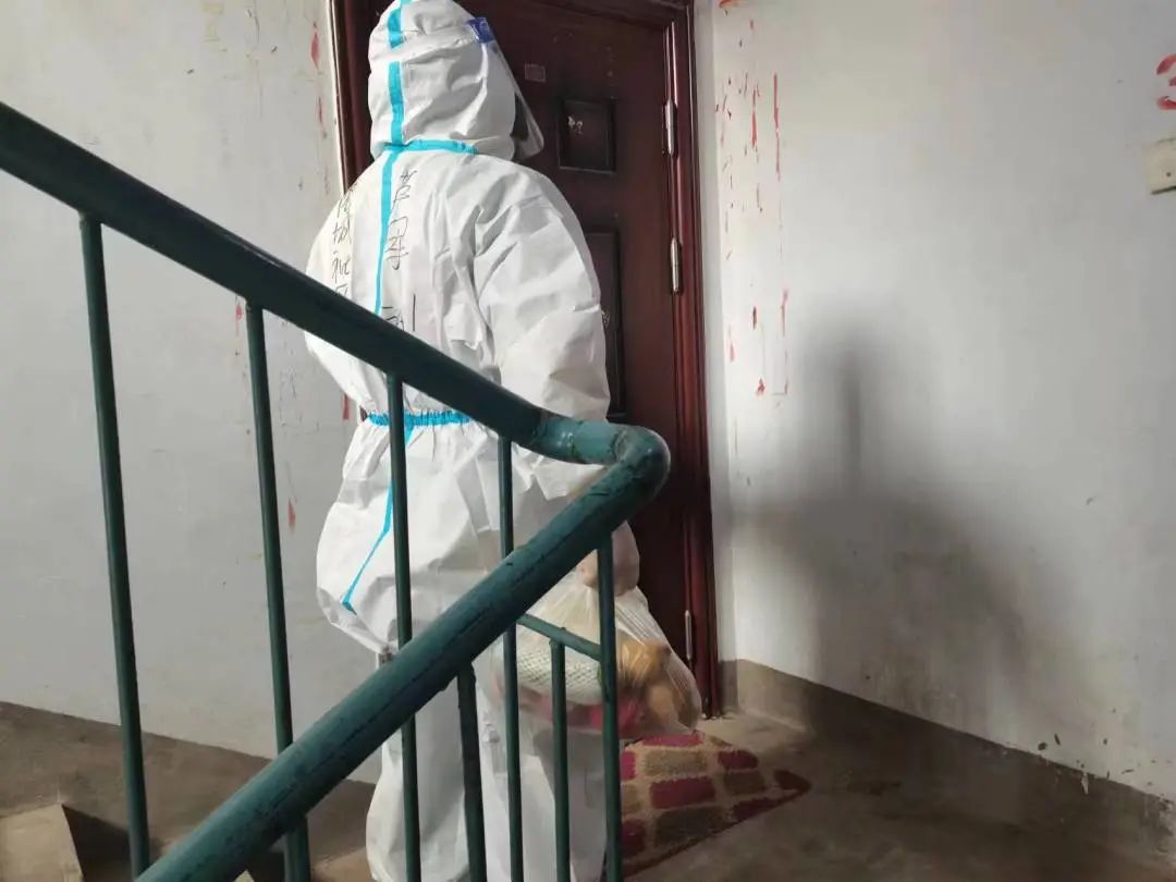 8月17日商城社区万国花苑二期被封控,商城社区党总支部书记姚万顺连夜带领17名社区工作者第一时间驻扎小区,24小时抗疫。18名社区工作者成立了“一办七组”,分别负责管控区消杀作业、物资配送、人员转运等工作。万国花苑二期小区常住129户259人,防疫任务艰巨又重要。自8月17日以来,社区工作者每天穿着防护服,按照各自分工,一遍遍上下楼给居民运送生活物资、协助入户核酸、入户解决住户生活困难。