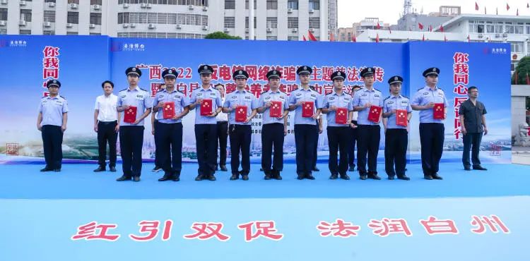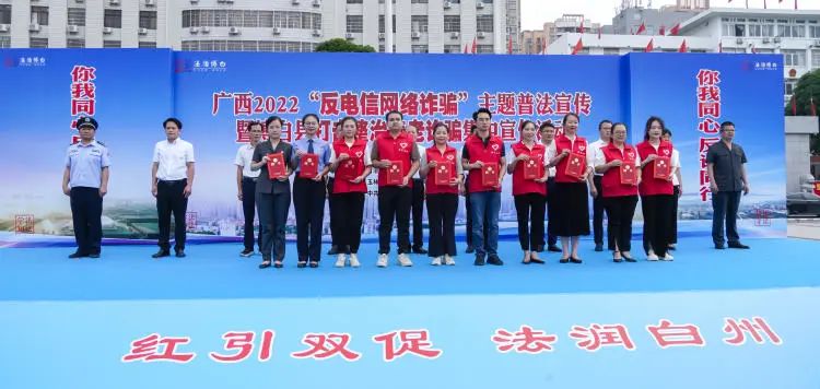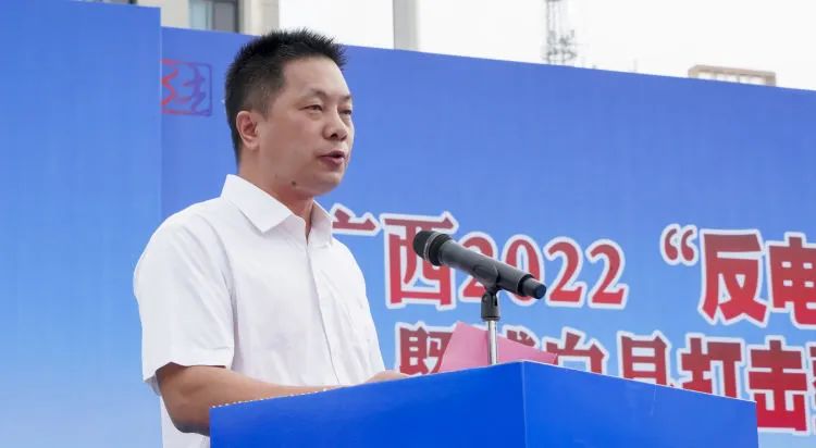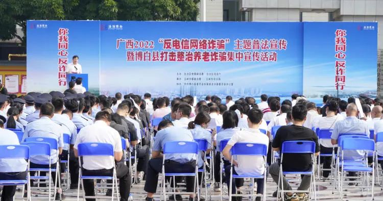 最后,黄都恒宣布:广西2022“反电信网络诈骗”主题普法宣传暨博白县打击整治养老诈骗集中宣传活动正式启动!