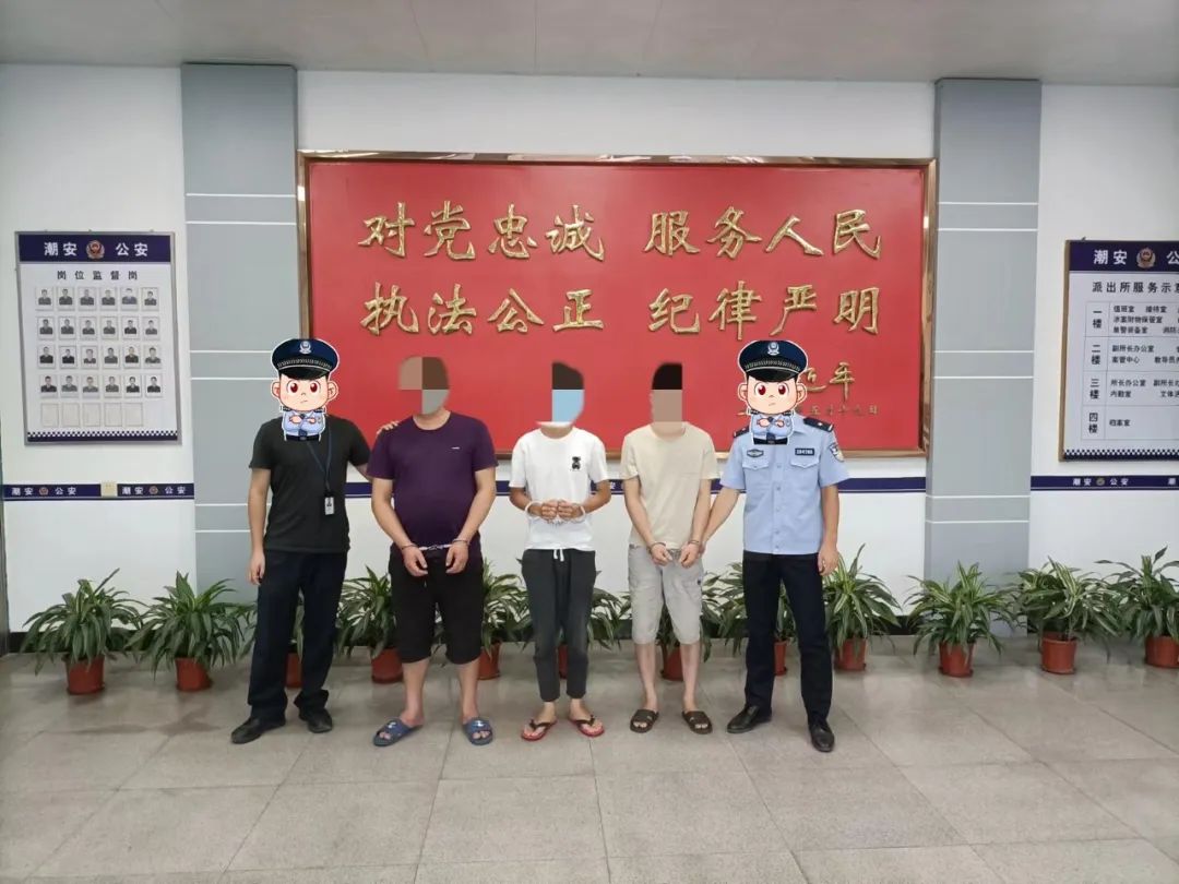彩塘派出所经布控,在潮安区彩塘镇先后抓获涉诈骗逃犯何某兴、黄某彬、沈某等3人。