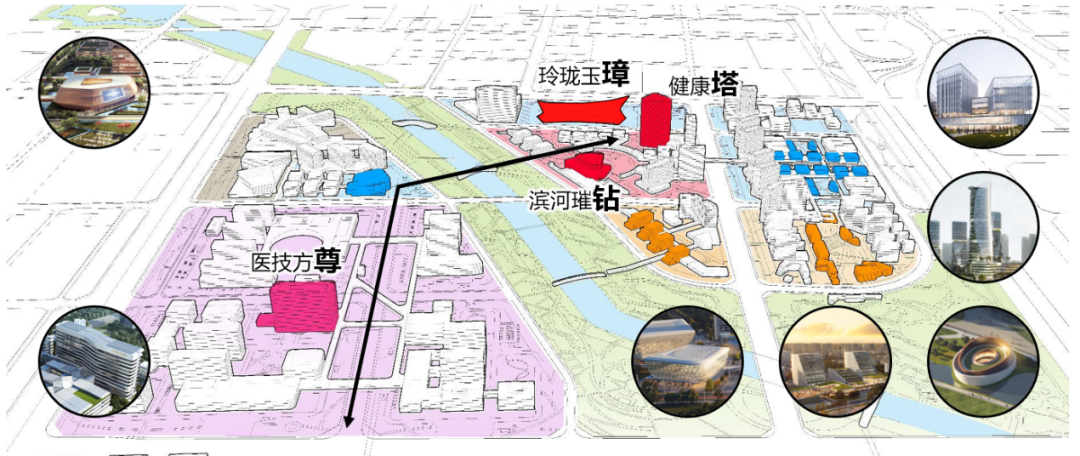 目前起步区西区已引入北京大学肿瘤医院、首都医科大学附属北京儿童医院、中国中医科学院广安门医院等多家医院。如何利用并激发优势医诊簇群资源的引擎带动作用?作为承担保定国际医疗基地相关规划设计任务的清华同衡详规中心项目组以需求为导向进行产品精准策划,提出一套医诊引领的产业供给模式,针对不同地块特质植入相应功能。