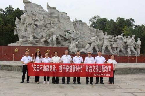 为深化政治交接,推进示范支部创建活动,8月25日至26日,达州市人大常委会副主任、民革达州市委会主委王全兴率队赴巴中开展政治交接主题教育暨示范支部创建学习交流活动。民革达州市委会专职副主委邓远轩、党派机关工作人员、通川区总支主委、市直属总支副主委、支部主委代表参加活动。