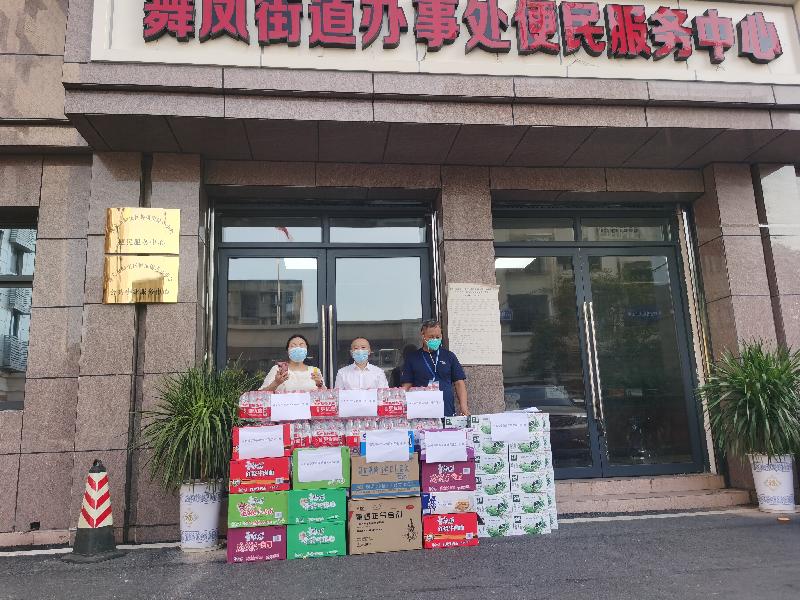 8月24日下午,南充侨商企业南充浩宇劳务派遣公司负责人陈松向舞凤街道办事处捐赠霍香正气液1件、口罩1000个、矿泉水30件、面包2箱、牛奶30箱、方便面10件等物资;8月25日向马市铺社区指赠喊话器15个,合计价值7000余元。