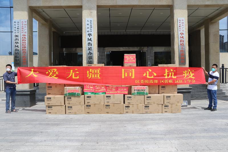 8月26日,侨商企业四川汇聚鑫科技有限公司捐赠5万只KN95口罩。8月27日,区委统战部、区侨联、区红十字会组织协调发放至全区12个街道和1个乡镇。