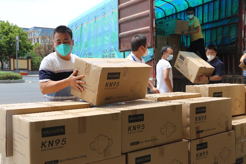 由于静态管理中交通管制,在8月27日,为了让50000个KN95口罩及时送到抗疫一线的医务工作人员和志愿者们手中,在人员缺乏但需搬运大量物资的情况下,区委统战部、区侨联随即组织协调区红十字会、街道干部、城管队员、企业工作人员和货车司机一起,面对高温考验,克服重重困难,同心同向,完成了派送物资这一艰巨的任务。
