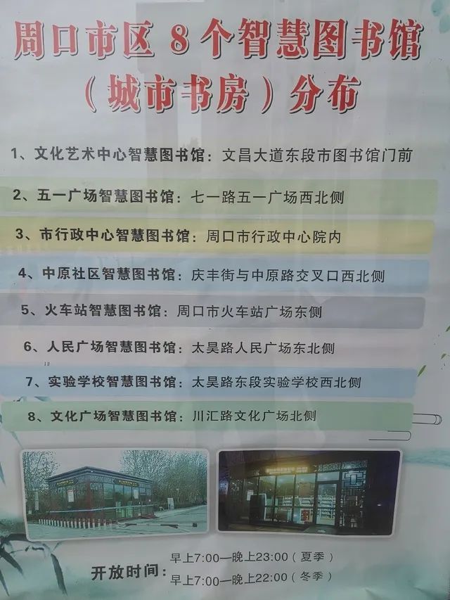 8月31日上午,记者从周口市图书馆了解到,根据周口市疫情防控形势,周口市中心城区内8处城市书房自8月31日8时起有序恢复开放,开放时间为每天上午8点至晚上9点。