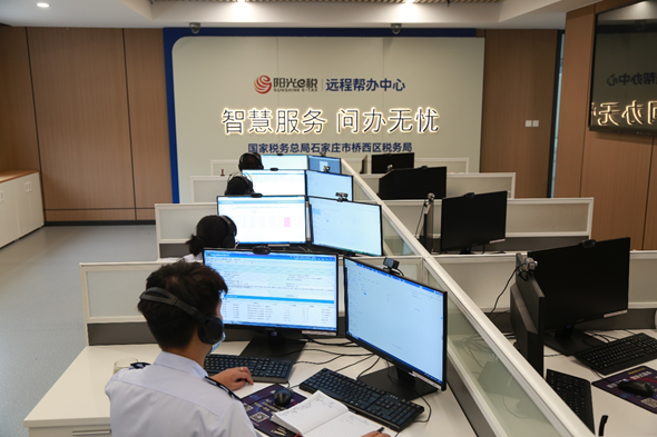 图为桥西区税务局远程帮办中心工作人员在线上帮助纳税人缴费人办理税费业务。 刘军 摄
