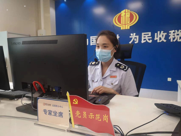 图为石家庄正定新区税务干部为纳税人提供远程辅导服务。孙琳 摄