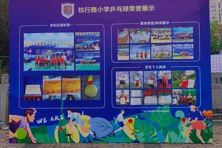 谢村校区乒乓球特色展示:乒乓球是我国的国球,作为谢村校区的特色项目,近年来在赛场上取得了优异的成绩,在余杭区中小学生乒乓球比赛中,荣获团体总分第一的好成绩。通过这些作品,希望孩子们能够在校园里从小得到培养,充实和丰富自己。