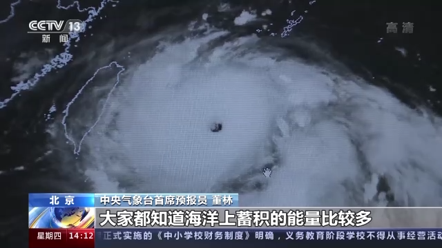 中央气象台首席预报员 董林:进入秋天以后,海洋上蓄积的能量比较多,海温比较高。尤其是前一段时间除了陆地上有高温之外,副高比较庞大,所以海上的温度也很高。蓄积的能量这么久之后,对台风的强度非常有利。这个台风它本身是个微型台风,它的体积很小,体积小的台风非常容易出现快速加强的状态。所以说,它的强度跟前面一段时期海洋蓄积的能量有关系,跟它自身的体型也是有关系的。