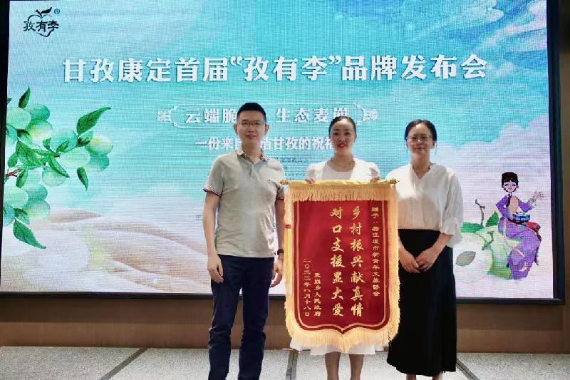 发布会上,都江堰市人大常委会副主任李智充分肯定了此次两地结对帮扶共建高原特色农创产品“孜有李”项目取得的成绩。她表示,两地在探寻优势互补路径、深化协调共享发展上大有可为,希望双方提高政治站位、形成共识合力,精准发力施策、坚持需求导向,健全长效机制、发挥各界力量,让合作效益最大化释放,努力画好最大“同心圆”。随后,都江堰市新青年文旅协会负责人唐蓉从品牌设计融入地方文化、线上销售助农增收、项目推动带来文旅效应等方面对“孜有李”品牌打造进行了阐述,分享了活动中的感动、感悟与感受。最后,都江堰市新青年文旅协会和康定市麦崩乡人民政府签订了战略合作协议。双方约定,将持续深化合作,争取将“孜有李”品牌打造得更为响亮。麦崩乡人民政府向协会送上了“乡村振兴献真情、对口支援显大爱”锦旗。