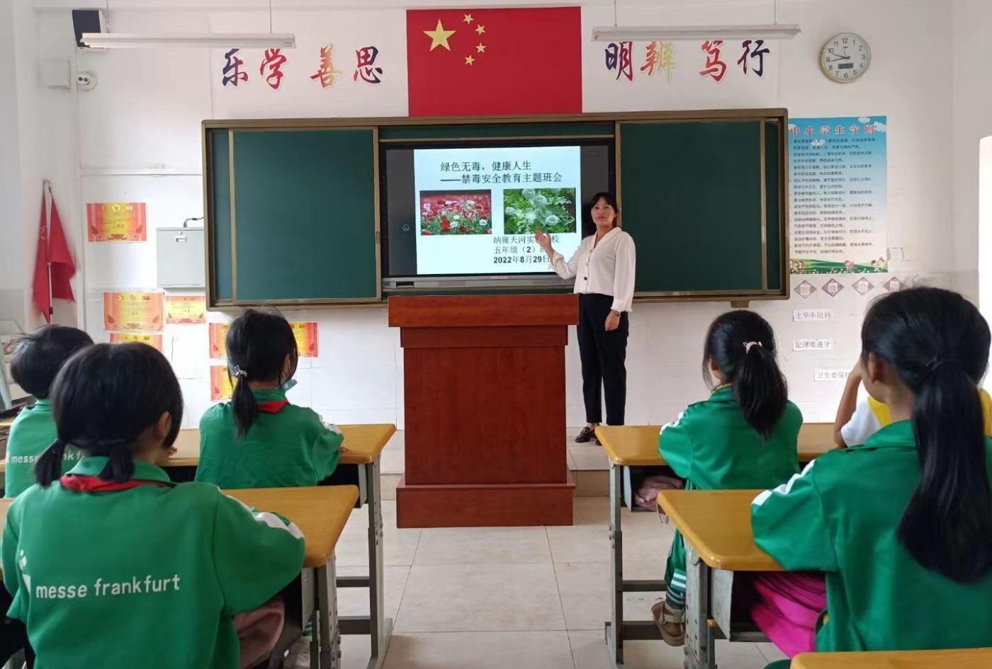 随后,各年级开展以“珍爱生命,远离毒品”为主题的禁毒主题班会。班主任从导致青少年吸毒的原因、染上毒瘾有哪些迹象、毒瘾为何难戒、青少年如何远离毒品等方面,引导学生从小树立守法意识,积极发挥禁毒“小宣传员”的作用,将学到的禁毒知识带进家庭、带向社会。在班会课上,同学们纷纷表示一定会珍爱生命、好好学习,拒绝毒品、健康生活,做好禁毒小宣传员。