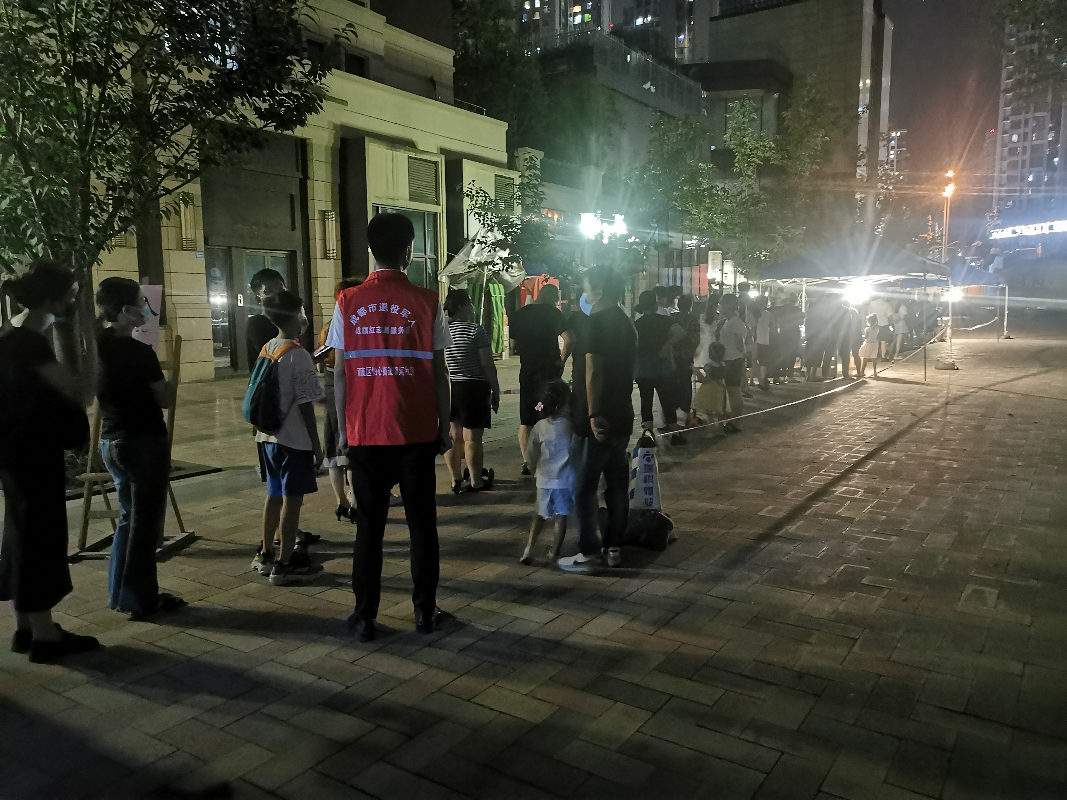 2022年8月31日晚,怡心街道清河社区社工室在小区连续开展全员核酸检测工作,清河社区社工室联动辖区志愿者20余人共同参与。