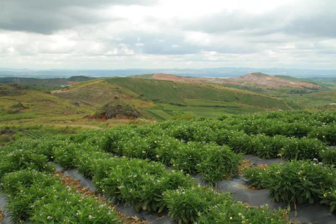 云南石林地处高原,拥有独特的喀斯特地貌和丰富的火山岩土壤资源。火山岩风化土质,表面有一层石子,既能减少土壤里水分的流失,还能增加昼夜温差,相比当地红土地土壤产出的人参果甜度更高。