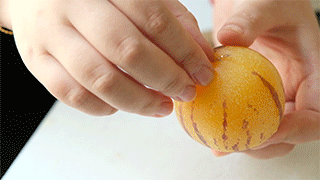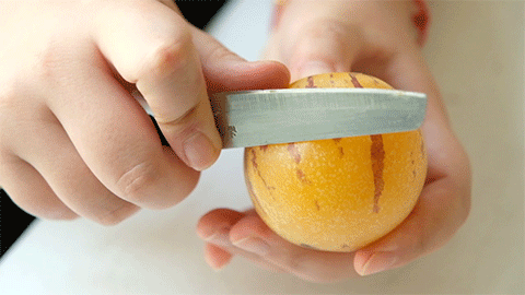 虽然人参果的皮也是可以直接吃的,但风物君还是喜欢去皮,直接吞掉一颗剥皮后的大果肉,那感觉太爽了。去皮也十分简单,先用刀背顺着人参果刮一下,让果皮和果肉分离,然后直接用手撕开果皮就好了,过程十分治愈。