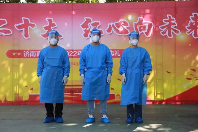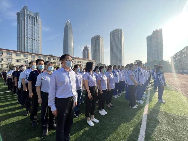 9月1日上午,历城二中和济南稼轩学校共同在舜德广场举行“喜迎二十大 奋发向未来”新学期开学典礼。伴随着全体师生嘹亮的国歌声,五星红旗迎着朝阳冉冉升起。