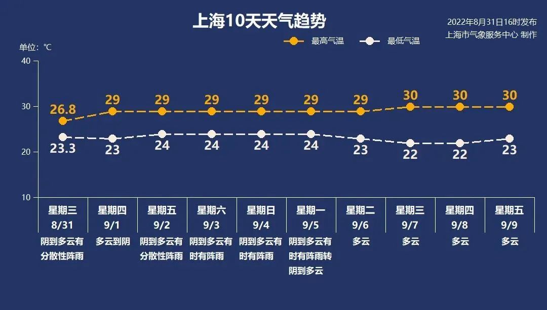 今天迎来开学日,上海处在副热带高压北缘,以多云到阴天气为主。气温在23~29℃之间。北到东北风4-5级阵风6级,沿江沿海地区5级阵风6-7级。