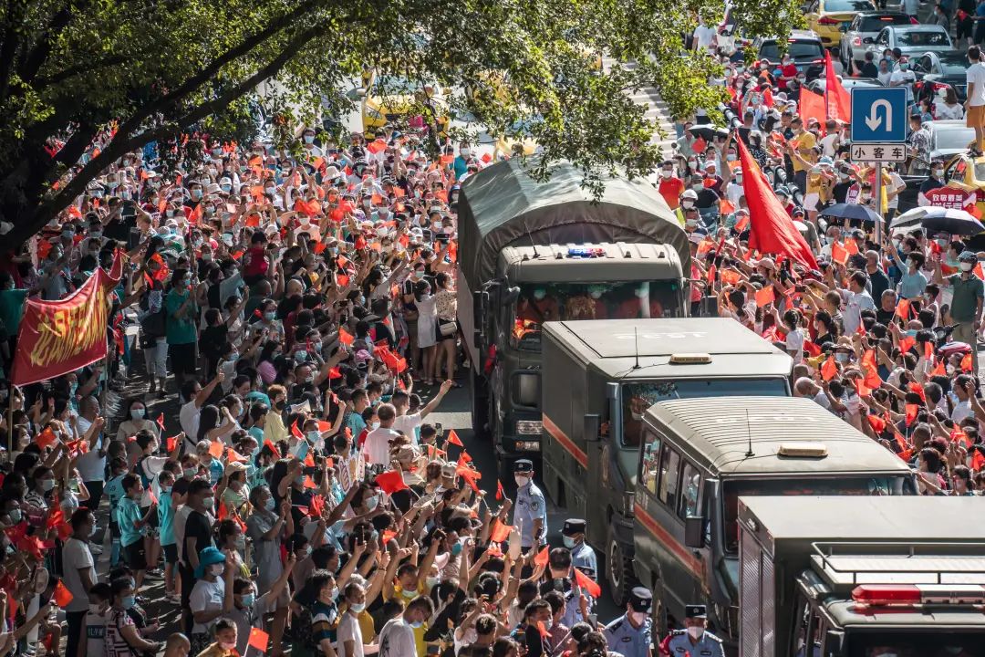 “欢送的老百姓非常多,有四五岁的小孩,也有六七十岁的老人,大家手里拿着五星红旗挥舞着。这一路上欢送的场景时常在我脑海里回现,激动的心情久久不能平复。”刘东君说道。