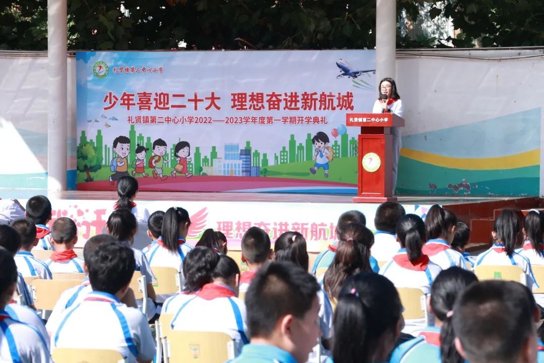 9月1日上午,北京市大兴区礼贤镇第二中心小学举办“少年喜迎二十大 理想奋进新航城”2023学年度开学典礼。开学典礼邀请大兴机场临空区规划建设部员工杜莉为礼贤二小的少年们带来临空知识课堂。