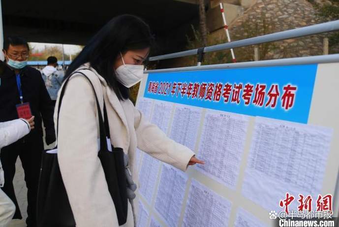 资料图:2021年10月30日,青海省海东市平安区2021年下半年教师资证考试(笔试)开考,考生查看考场分布图。