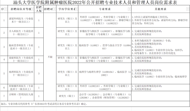 聘用人员为事业编制,执行国家、广东省和汕头大学医学院附属肿瘤医院规定的薪酬待遇和汕头市有关人才引进政策。