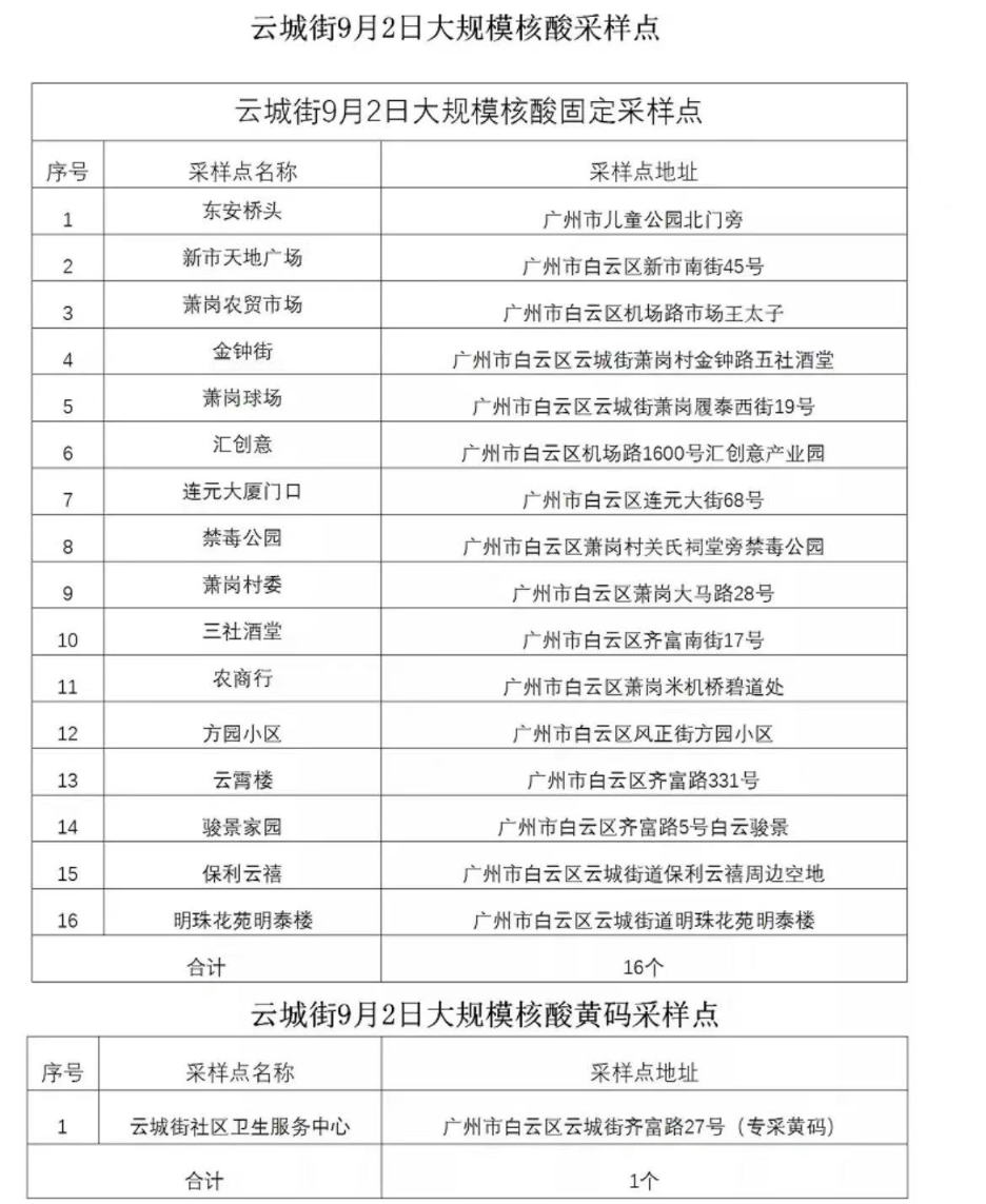 按照上级疫情防控工作统一安排,白云区云城街于9月2日15时开展大规模核酸检测工作,结束时间根据各点具体情况而定。有关事项通告如下: