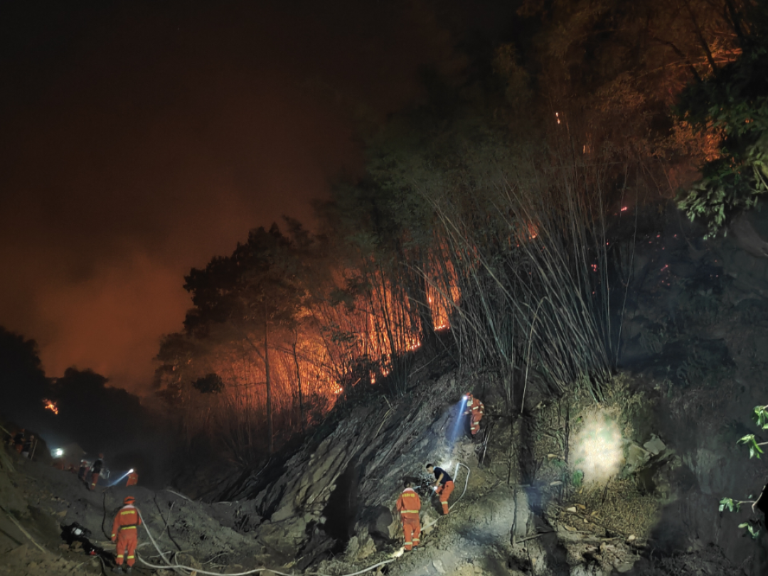 “身后就是民房和养鸡场,我一步也不能退。”在23日的战斗任务中,接替队友在一线扑火的消防员成薛文,举着水枪近距离面对凶猛的山火。火舌直面而来,他直言心里很紧张,也有些害怕,但一步都没有退缩,手中水枪喷出的“水龙”与“火龙”在夜空中交织。“如果有一阵风吹来,一两分钟我们就有可能被大火包围,危及生命。”