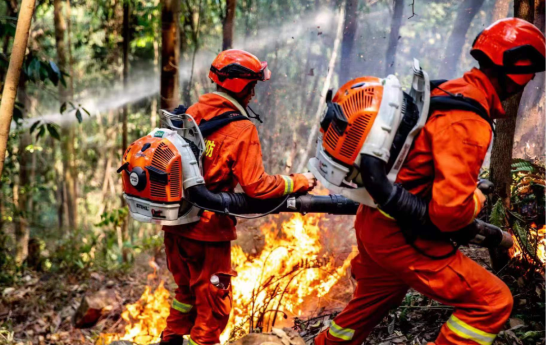 用水灭火,离山火距离越近效果就越好。靠近,靠近,再靠近!鲁学高离火焰最近时仅1米左右,迎火而立,最长时间达6—7小时。鲁学高告诉笔者,为了对抗高温灼热,许多队友拿着枪头相互对冲,给身体降温。湿漉漉的灭火服仅仅带来了片刻的凉爽,很快又被高温烘烤干。